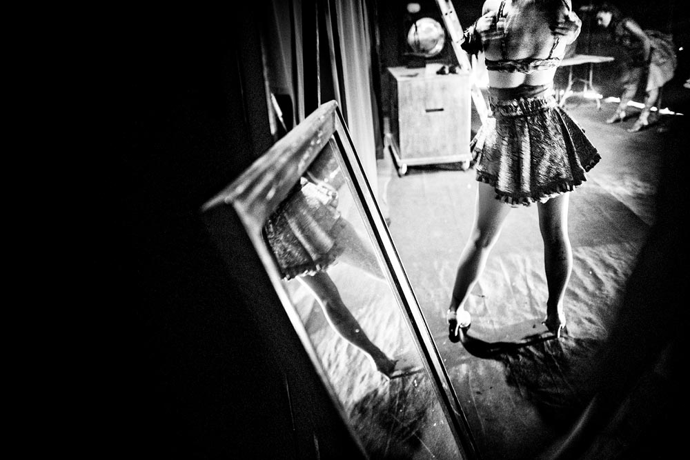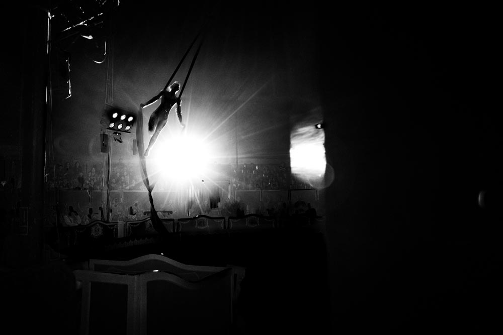 Lluís Real se acerca al Circo Raluy desde una mirada documental y próxima: no fotografía el espectáculo como un “número”, sino como una forma de vida. Esta serie, Circ, forma parte del proyecto expositivo La Fugacitat de la Mirada. El circo aparece como un territorio móvil, hecho de espera, trabajo y vínculos; un patrimonio vivo que viaja con sus carromatos, su memoria y su estética de época.